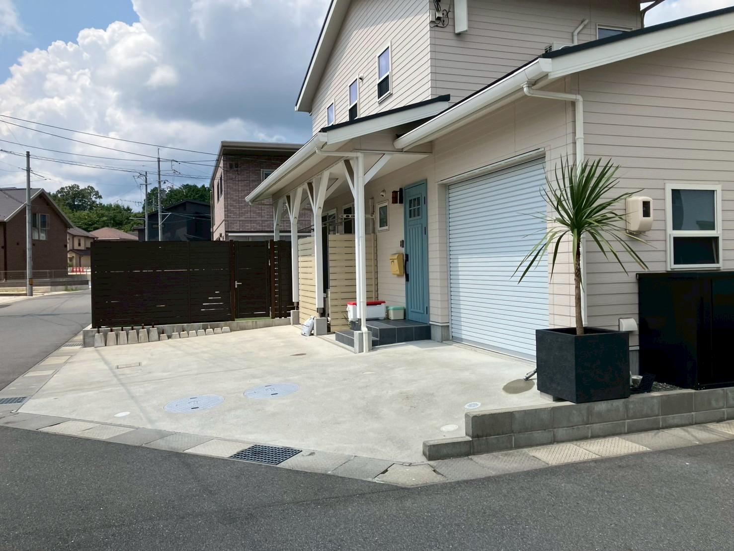 お客様からのご依頼内容: 「自宅の庭をアメリカ風にしたい」とのご希望をいただいております。 特に大切にされているのは、玄関ポーチのデザイン、お子様が安心して遊べるスペースの確保、洗濯物を干せる機能的な場所や屋外の流し台の設置でした。